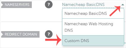4. Scroll down to the Nameservers option and select Custom DNS from the drop-down menu.